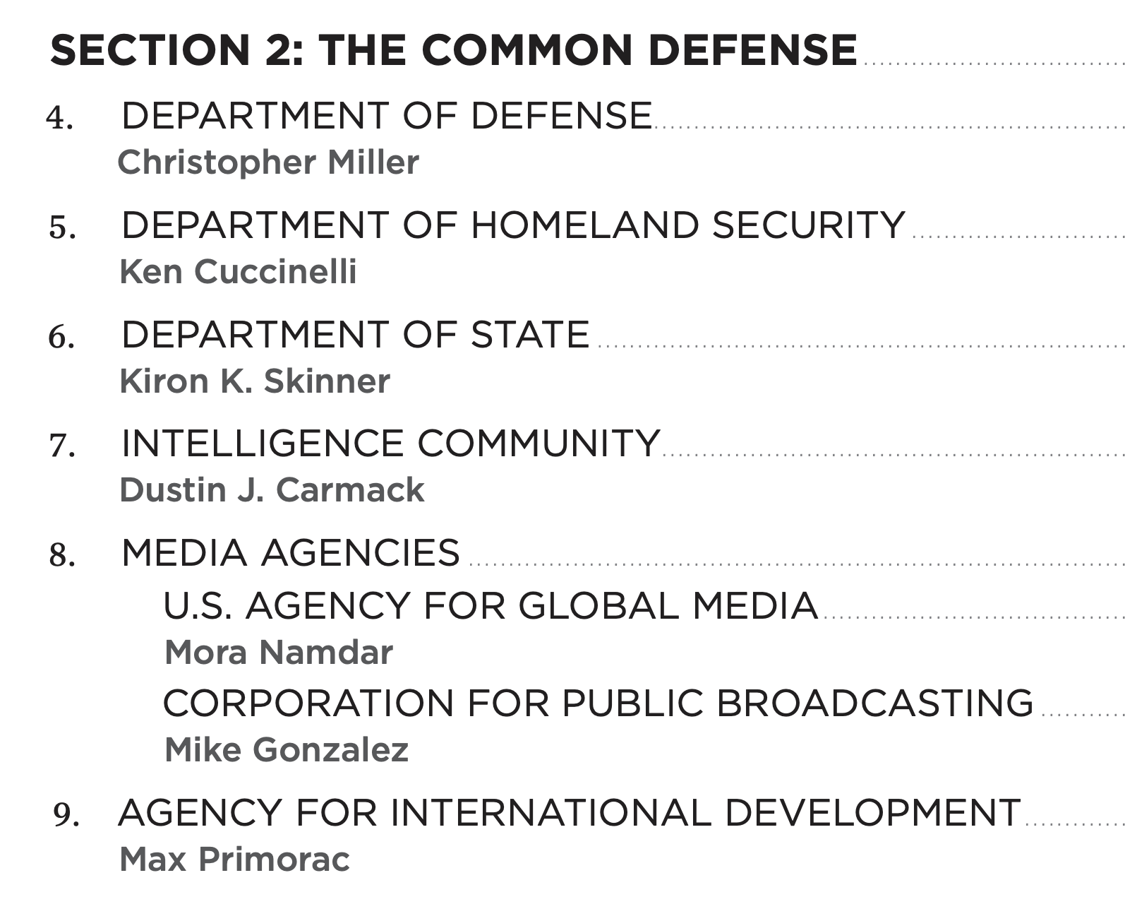 If you don’t read the whole document, at least peruse the chapters to see the extensive list of agencies and programs that are targeted in the mandate. It is staggering in its comprehensive dismantling of the American government. It’s also a roster of right-wing radicals, the authors of the chapters, who might wind up running the government. Remember their names.